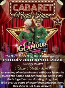 | Fri 3rd | MIS FANEE & VICKY PARIS GLITZ & GLAMOUR DOORS OPEN 18 :30 | An evening of entertainment with the dazzling drag duo SHOW STARTS 20:00 - LAST ORDERS 23:15 - Tickets on sale now £4 ![]() |